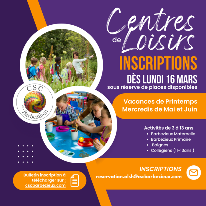 Inscriptions Centres de loisirs : Vacances Printemps + Mercredis de Mai à Juillet