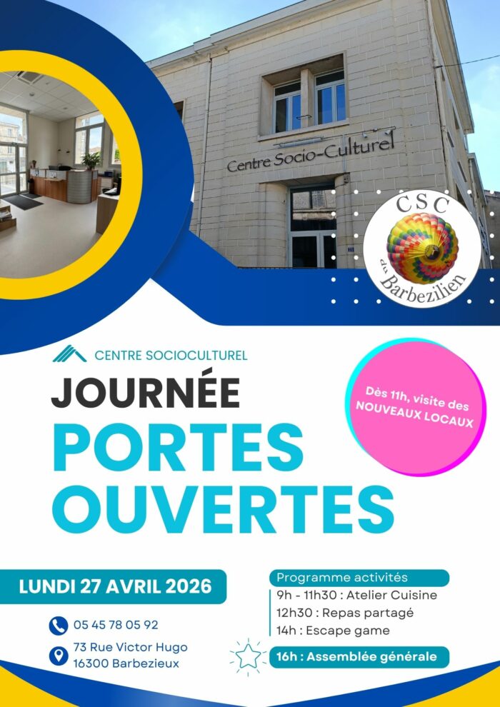 Le Centre Socioculturel du Barbezilien vous ouvre ses portes pour une journée exceptionnelle de partage et de découverte ! Que vous soyez déjà membre ou simplement curieux, vous êtes les bienvenus !