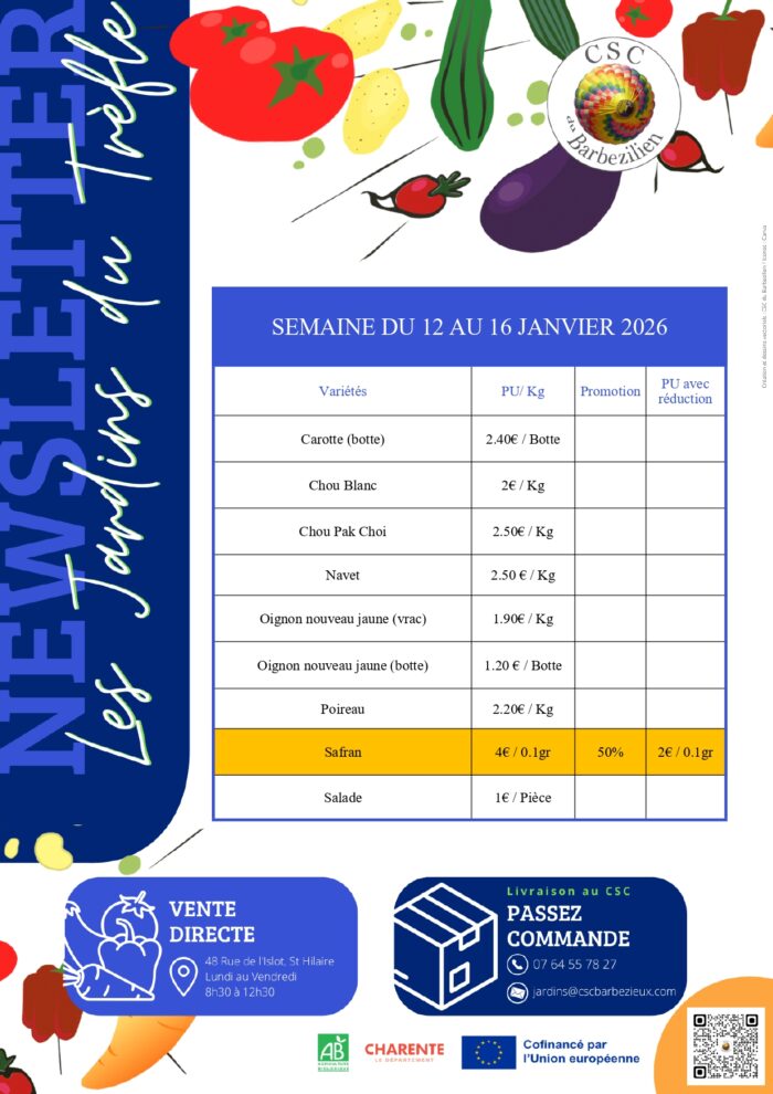 Newsletter maraîchage (du 12 au 16 Janvier 2026)